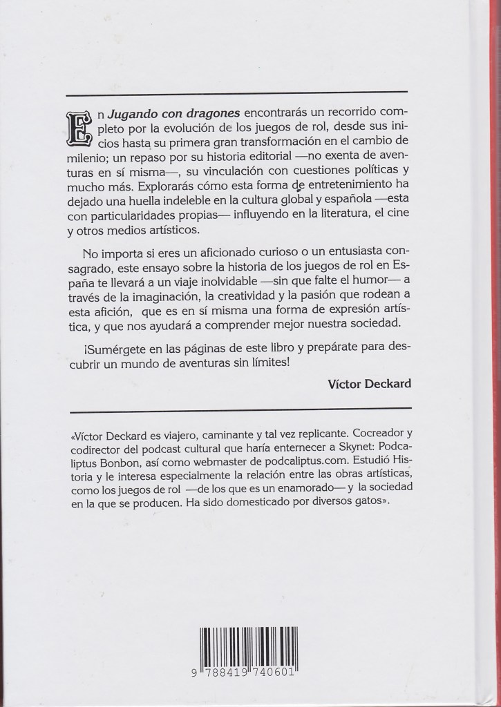 Todo sobre la historia de los juegos de rol y su mundillo asociado en España (libro-juegos, literatura, videojuegos, clubes, fanzines, cine, periodismo, juegos de carta y mesa, editoriales, ilustradores, cómics…), desde principios de los 80 hasta ahora, con su auge, decadencia, transformación y renacimiento.